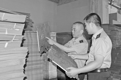 執(zhí)法人員現(xiàn)場(chǎng)比對(duì)產(chǎn)品。