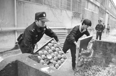 執(zhí)法人員銷毀侵權(quán)產(chǎn)品。