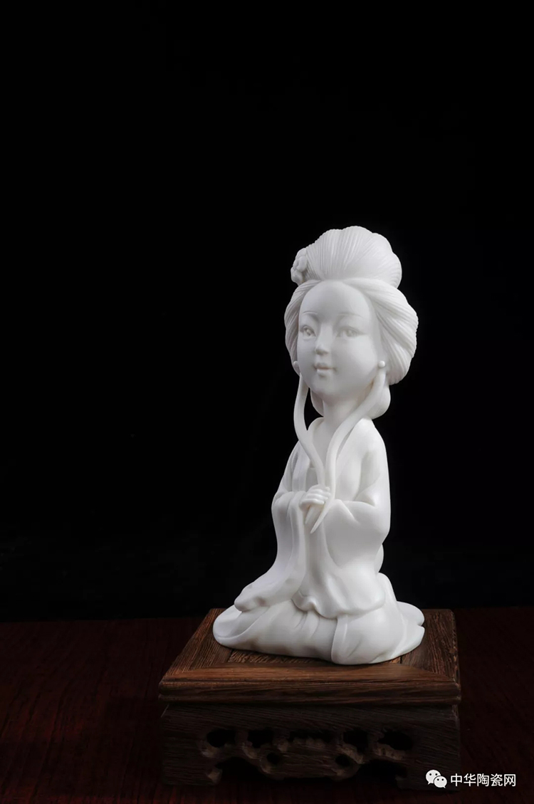 德化白瓷作品創(chuàng)作題材豐富,仕女是一大題材之一,自古以來,以四大美女、唐清仕女等人物創(chuàng)作的作品比比皆是。因德化白瓷細(xì)膩,可塑性強(qiáng),適合仕女作品創(chuàng)作,所創(chuàng)作品人物傳神,雕刻精細(xì)。