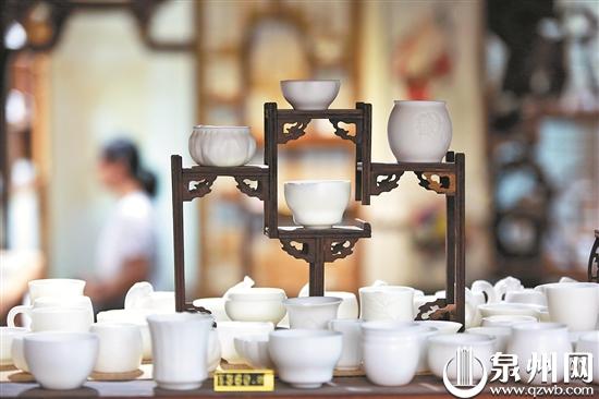 走進多寶堂,櫥柜中明代經(jīng)典德化名瓷《渡海觀音》《白釉文昌帝君》等復原作品,綻放出熠熠生輝的獨特魅力。“參展商到茶具城,不僅能看精美茶具,還可以欣賞到德化的國瓷、國禮,了解更多德化陶瓷文化。”多寶堂的負責人徐思敏說,以往國寶只能珍藏博物館,為了讓經(jīng)典再現(xiàn),走進尋常百姓家,他們與德化陶瓷博物館協(xié)商合作,獲得獨家授權(quán)“讓國寶復原”。