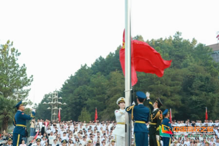 在雄壯激昂的國(guó)歌聲中,景德鎮(zhèn)陶瓷大學(xué)國(guó)旗護(hù)衛(wèi)隊(duì)邁著鏗鏘有力的步伐護(hù)送國(guó)旗進(jìn)場(chǎng)。鮮艷的五星紅旗徐徐升起,全場(chǎng)師生懷著崇敬和激昂的心情,行注目禮,高唱國(guó)歌。