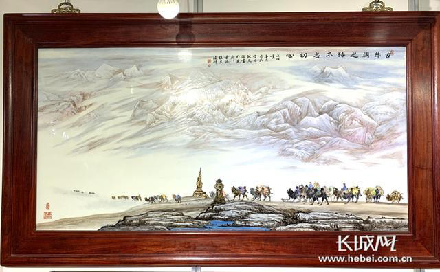 景德鎮(zhèn)高級工藝美術(shù)師熊文波創(chuàng)作的瓷雕純手工原創(chuàng)作品《古絲綢之路——不忘初心》。長城新媒體記者 張藝萌 攝