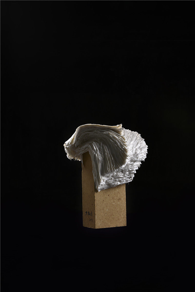 傳統(tǒng)瓷塑題材雖然在德化有著不可撼動的地位,但另一方面,今天也有一部分藝術(shù)家嘗試掙脫傳統(tǒng)的束縛:他們并非采取與傳統(tǒng)完全決裂的態(tài)度,而是擷取傳統(tǒng)圖示加入到個人化的當(dāng)代創(chuàng)作中,如陳藝輝、間麗華夫婦的《物》,將佛教塑像的衣紋、傳統(tǒng)手工花等元素融入到可口可樂、酸奶瓶等日常可見之物中;又例如二者的老師蘇獻忠很早就已在國際舞臺中嶄露頭角,曾多次參加國際展覽,他的系列作品《紙》以定格翻動書籍的瞬間展示德化白瓷細(xì)膩、易于塑造,同時又脆弱的特質(zhì)。
