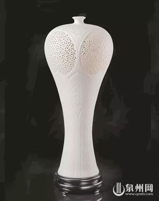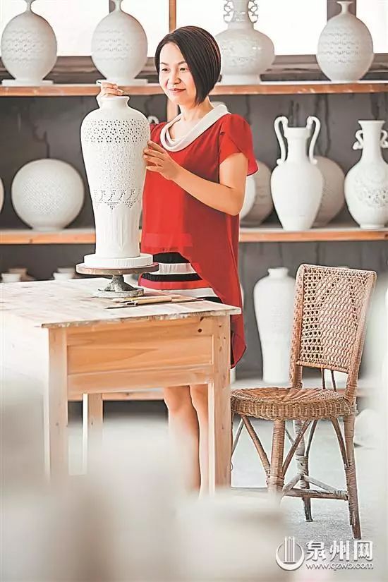 1988年,20來歲的陳明華創(chuàng)作了《菊花通花瓶》《雙魚通花瓶》,獲得福建省陶瓷新品大師一、二等獎(jiǎng)。這讓熱愛創(chuàng)作的陳明華更自信,多年來潛心研究開發(fā)通花、鏤雕藝術(shù),作品多次在國家級(jí)、省級(jí)大賽中摘金奪銀,深受國內(nèi)外友人的青睞。她的作品《雙龍爭艷》通花瓶分別被福建省博物館、中國陶瓷博物館(原景德鎮(zhèn)陶瓷館)、福建省工藝美術(shù)珍品館等收藏,《世博梅瓶》被中國閩臺(tái)緣博物館收藏,《通花梅瓶》分別被中國閩臺(tái)緣博物館、中華民族藝術(shù)珍品館收藏。