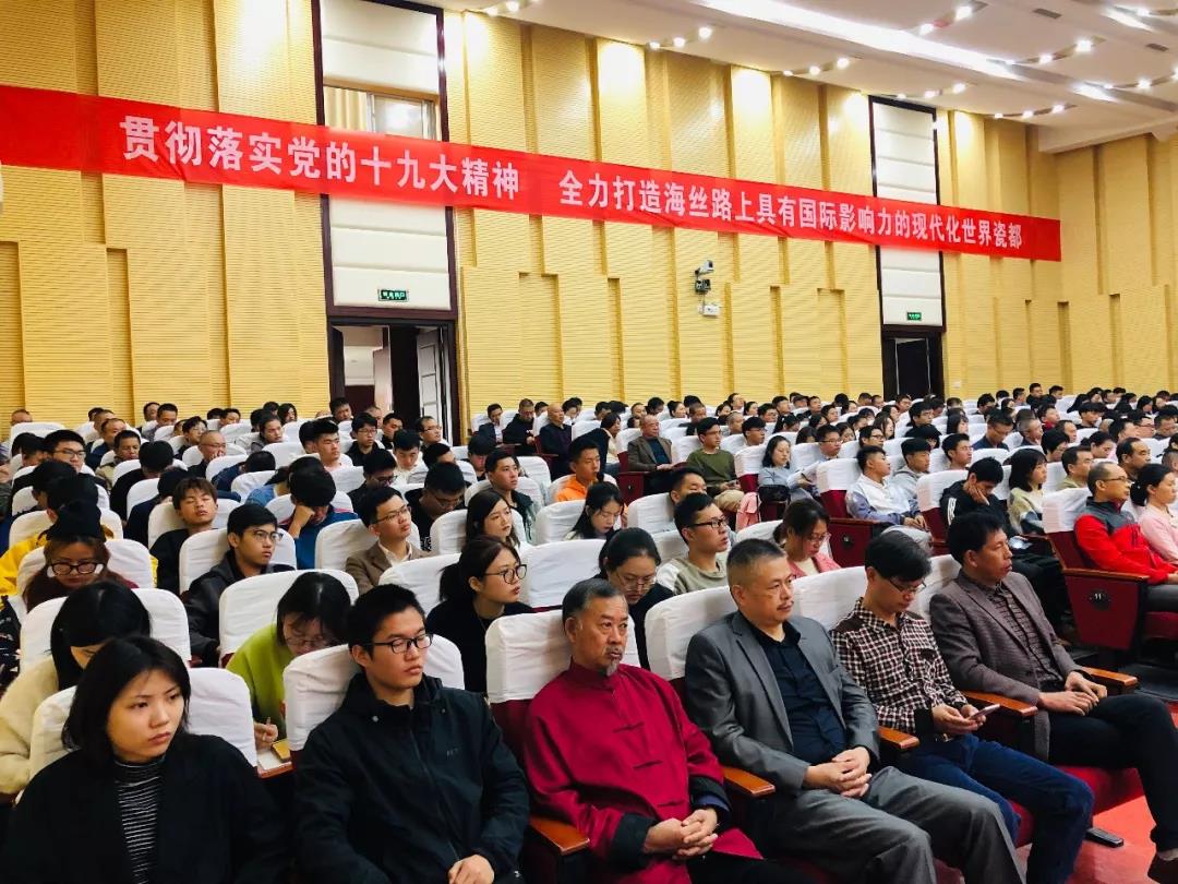 11月22日,閻崇年先生在縣政府會議中心大會堂為德化人民再次帶來一場“百家講壇”——陶瓷之路與文化自信,縣委書記梁玉華,縣長黃文捷及四套班子成員,公共文化服務(wù)體系創(chuàng)建單位、非物質(zhì)文化遺產(chǎn)傳承人、工藝美院及職校師生參加了專題講座。閻先生講座內(nèi)容豐富生動,講解精辟入里,既立意高遠(yuǎn)、寓意深刻,又聯(lián)系實(shí)際、接續(xù)地氣,就如何走好堅(jiān)定強(qiáng)大文化自信與陶瓷發(fā)展之路,進(jìn)行了全面闡述,實(shí)讓聽眾受益匪淺。