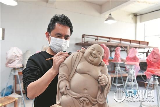 近日,德化縣建窯陶瓷研究所所長、福建省工藝美術(shù)大師吳志勇創(chuàng)作的《蒲團(tuán)觀音》《三十三態(tài)觀音》和《文昌帝君》3套35尊德化白瓷雕塑藝術(shù)作品入藏中國美術(shù)館。多年來,吳志勇力求透過陶瓷藝術(shù)表達(dá)自己內(nèi)心的思想,追求藝術(shù)本真,形成自己獨(dú)特的創(chuàng)作風(fēng)格。據(jù)介紹,此次入藏的作品分別于2014年、2016年和2017年創(chuàng)作完成,除了《蒲團(tuán)觀音》《文昌帝君》兩件作品高90厘米以上,《三十三態(tài)觀音》均在20至25厘米之間。圖為吳志勇在創(chuàng)作中。(李宏圖 攝)