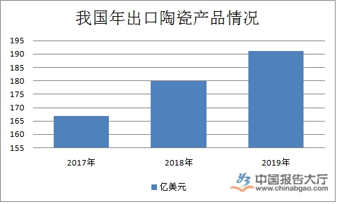 2019年,我國(guó)規(guī)模以上建筑陶瓷企業(yè)1435家,產(chǎn)值3831億元,同比增長(zhǎng)17.43%;2019年,我國(guó)日用陶瓷產(chǎn)量310億件,產(chǎn)值達(dá)960億元。年均復(fù)合增長(zhǎng)率為18.76%;2019年我國(guó)藝術(shù)陶瓷的工業(yè)產(chǎn)值約在180億元左右。日用陶瓷、建筑陶瓷、衛(wèi)生陶瓷以及藝術(shù)陶瓷產(chǎn)品的出口,也呈現(xiàn)全面飄紅的景象。預(yù)計(jì)2020年我國(guó)陶瓷制品產(chǎn)值達(dá)到11000億元。