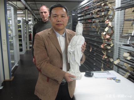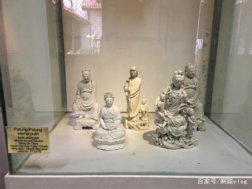 在來大堂看一下其他的陶瓷作品,在大堂的正中央放了一個(gè)巨大的白瓷彌勒佛,其實(shí)彌勒佛的題材,也是在我們陶瓷當(dāng)中最常用的一個(gè)代表之一,然后在彌勒佛兩邊有紅色這種灌瓶,這個(gè)是采用的我們中國非物質(zhì)文化遺產(chǎn),漆線雕工藝來制作成的,非常的美麗,我感覺看起來非常的漂亮,但是我聽說這兩個(gè)陶瓷的價(jià)值竟然不敵,這一個(gè)嬌小的作品,很奇怪,大家來看一下這一個(gè),文昌帝君的瓷像也是,用整塊的白瓷土來雕塑而成的,非常的高大,而且他陶質(zhì)感覺非常清澈透亮,據(jù)說這種,如果我們晚上拿手電筒照過去,它可以穿破,就非常透明,這個(gè)是我們中國德化白瓷,一個(gè)非常特殊的一個(gè)特點(diǎn),不是其他區(qū)域都有的,這個(gè)是它的原品,是在福建博物館的一個(gè)文昌帝君的一個(gè)塑像,然后這個(gè)是它的仿制品。