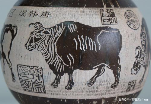 看一下,這里也放了一個(gè)非常巨大的壺狀的陶資,天地方圓,還有名字,看下這個(gè)陶資的外圍這圈畫了一幅圖,大家猜一下是什么圖呢,給大家普及一下這尊陶瓶上面繪畫是什么圖,首先這幅畫是德化一位非常出名的一個(gè)陶瓷藝術(shù)大師,叫做陳和忠用手親自繪畫上去,那么它這幅畫作的取材是取自于,我們中國十大傳世名畫,五牛圖,就是有五只中國黃牛的造型,有五只牛。