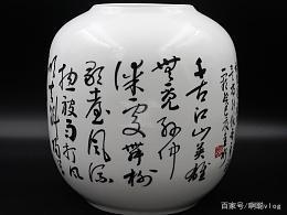 然后來看看另外一幅作品,這一幅也是瓷板書法,是德化當(dāng)代最著名的陶瓷書法大師,張金水親自書寫的,可以看一下這個(gè)文字,是不是非常的有個(gè)性,這是選自于李白的短歌行這首詩,非常有特色,我在想能夠在陶瓷上面寫書法,可見他功力有多深。