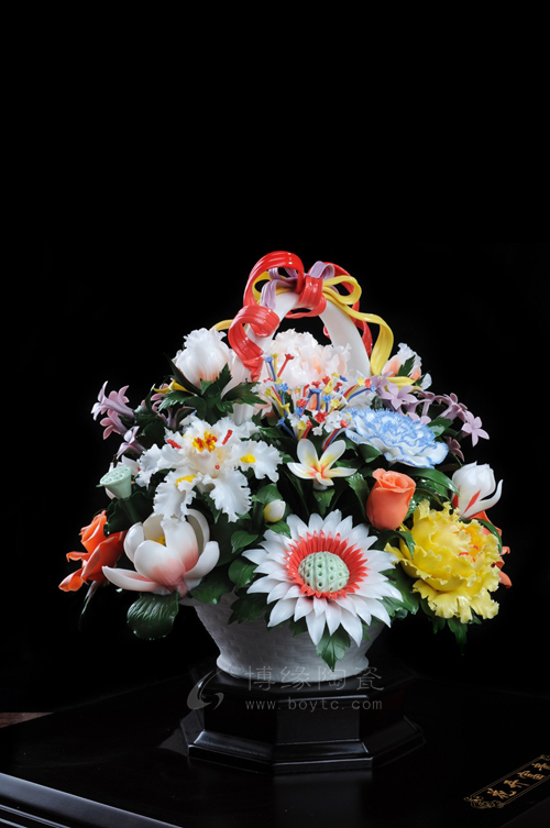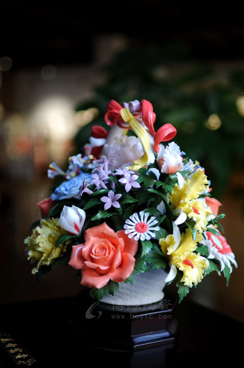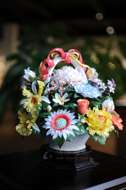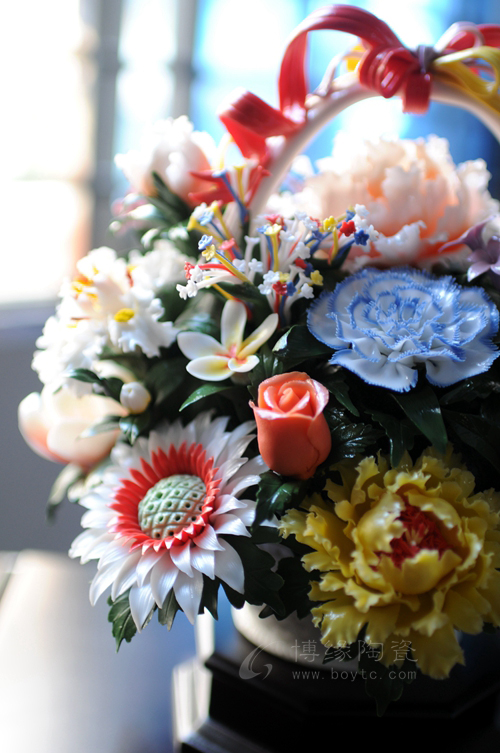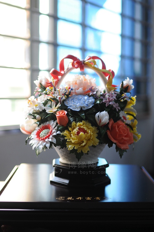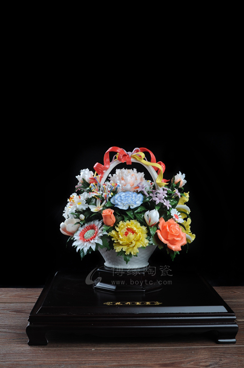 瓷花作為陶瓷藝術(shù)品有著其獨特的魅力所在,瓷花創(chuàng)作并不以單一形式表現(xiàn),而是與其他的器物搭配,并突出瓷花的主題。
