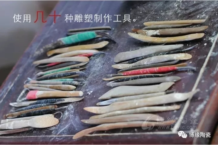 手工制作,經(jīng)堆,捏,雕,塑,刻等,過(guò)程使用幾十種制作工具。