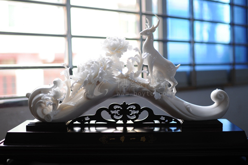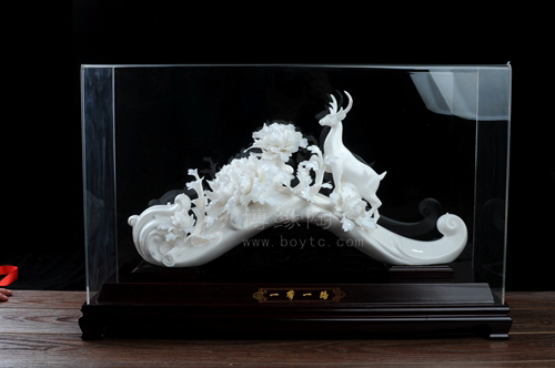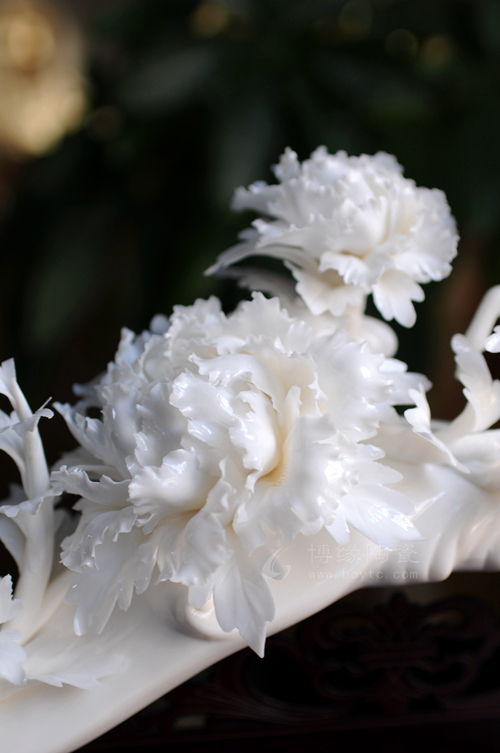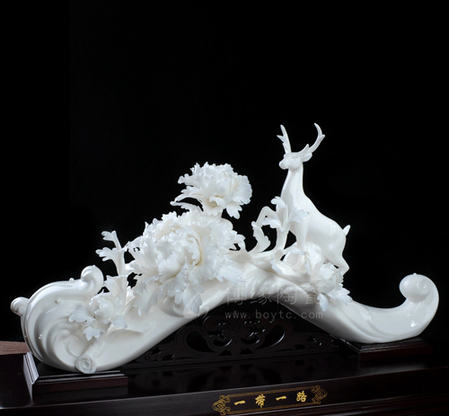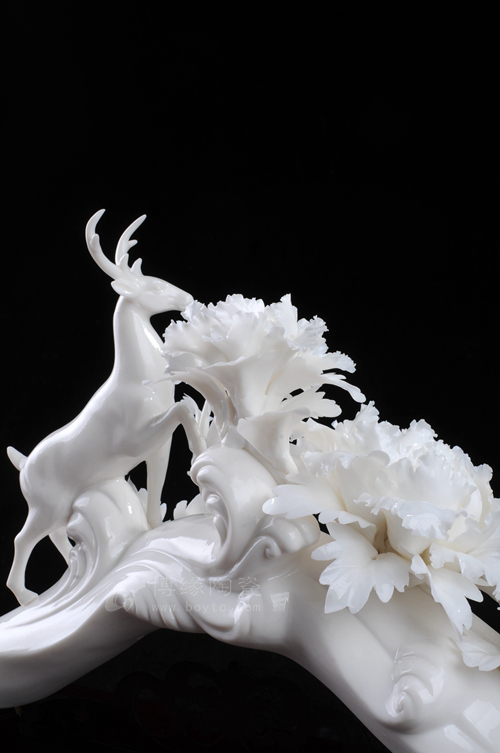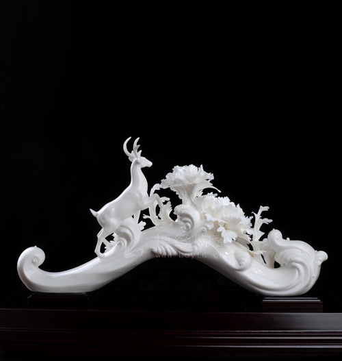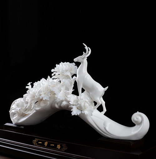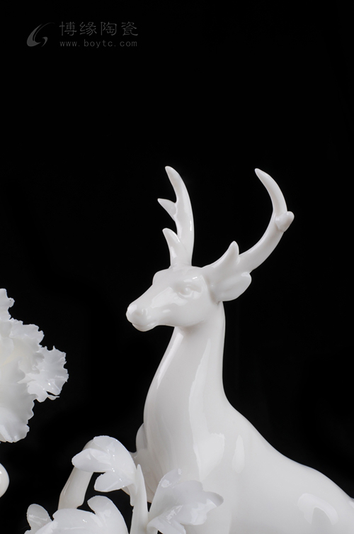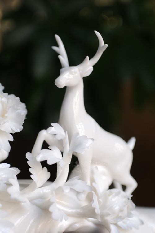 德化做為“中國白“的故鄉(xiāng),其瓷土可塑性好,表現(xiàn)力強(qiáng);德化的陶瓷藝術(shù)家以德化特有的溫潤如玉,素凈淡雅的”中國白“為胎質(zhì),塑造了栩栩如生的鹿和千嬌百媚的鮮花。