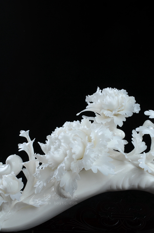 以白瓷來展示花的質(zhì)感,傳神地展現(xiàn)花的造型,花的風(fēng)骨,花的神韻等,賜予瓷花鮮活的生命,塑造出了“風(fēng)情萬種”,”繁花爭艷”的世界,烘托出瓷都德化陶瓷技藝的燦爛春天。