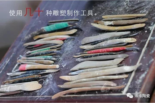 手工制作,經(jīng)堆,捏,雕,塑,刻等,過程使用幾十種制作工具。