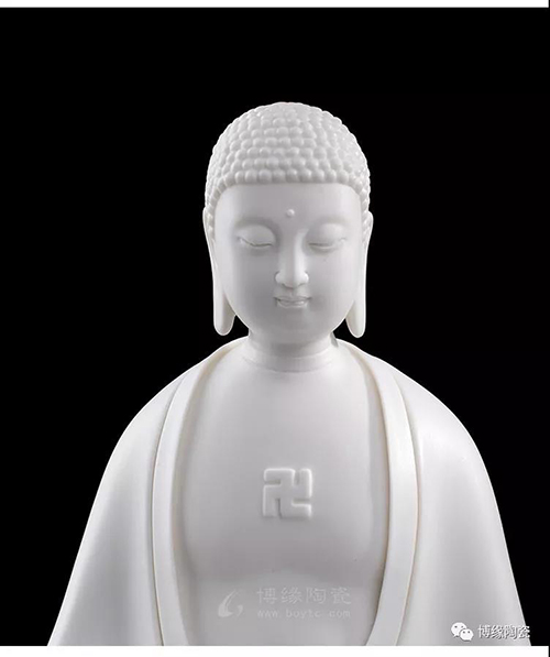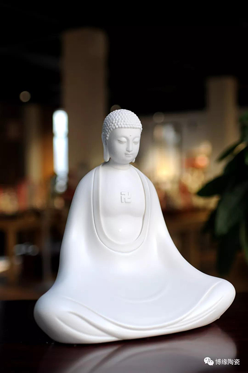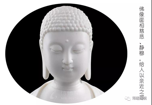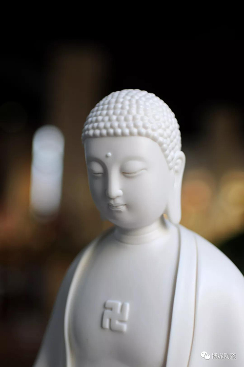 德化瓷器,以白瓷為最;白瓷之中,又以佛像為最。德化白瓷所塑佛像有性格鮮明、造型優(yōu)美、神態(tài)逼真、風(fēng)格洗練的特點(diǎn)。有一種單純的雕塑美和原材料的質(zhì)地美,最能體現(xiàn)佛教樸素、平和的思想。
