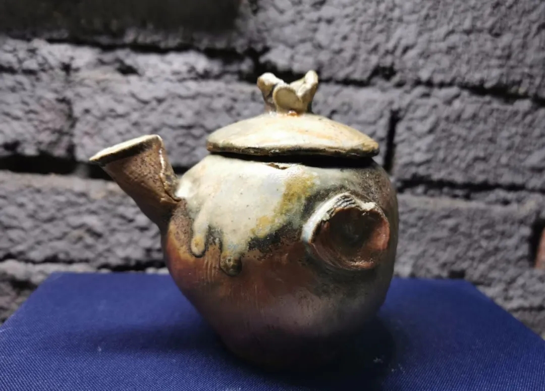張寶玲老師告訴我們,在柴燒里,1300多度的燃燒強度,升溫時間,窯外的天氣,火焰的流動方向……等任何“風(fēng)吹草動”都會影響著落灰流釉以及顏色的變化和最終呈現(xiàn)。即使,是在同一個窯爐中的器物,其形、態(tài)、色、質(zhì),都不重復(fù),一器一相,妙不可言。