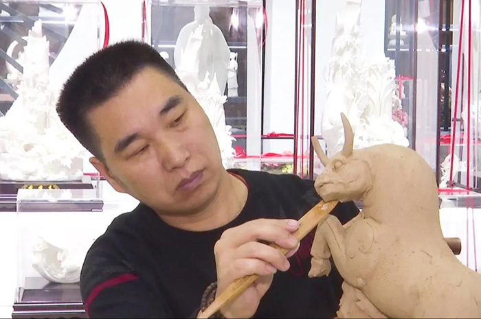 福建省陶瓷大師鄭建忠創(chuàng)作“幸運(yùn)牛”、“轉(zhuǎn)運(yùn)牛”;