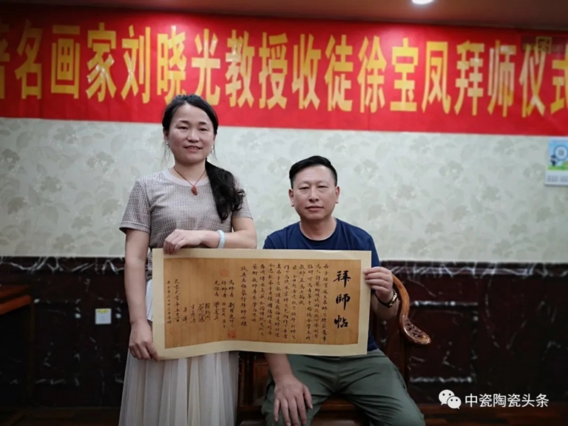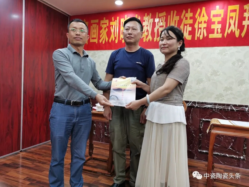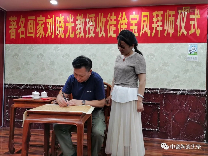 5月1日,福建省德化博及漁人陶瓷有限公司徐寶鳳拜中國美術(shù)家協(xié)會(huì)會(huì)員、清華大學(xué)美術(shù)學(xué)院高研班導(dǎo)師、中國現(xiàn)代美術(shù)研究院油畫院院長、吉林省油畫學(xué)會(huì)副主席、吉林大學(xué)美術(shù)學(xué)院客座教授劉曉光為師的拜師儀式隆重舉行。