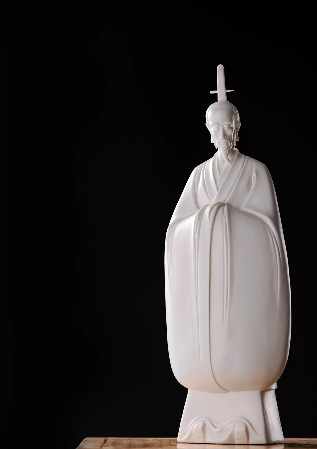 儒家講人道,佛家求佛道,道家窮天道。經(jīng)過(guò)長(zhǎng)期的演變之后,儒釋道三家早已相互滲透,融入到中華民族的血脈中去。陳建陽(yáng)以“儒釋道”為題創(chuàng)作的系列作品,以三教創(chuàng)始人為雕刻對(duì)象,用瓷雕藝術(shù)語(yǔ)言溯源中華優(yōu)秀傳統(tǒng),解讀時(shí)代特征。既是對(duì)中華文明的濃縮呈現(xiàn),也是對(duì)中華傳統(tǒng)文化的續(xù)接。