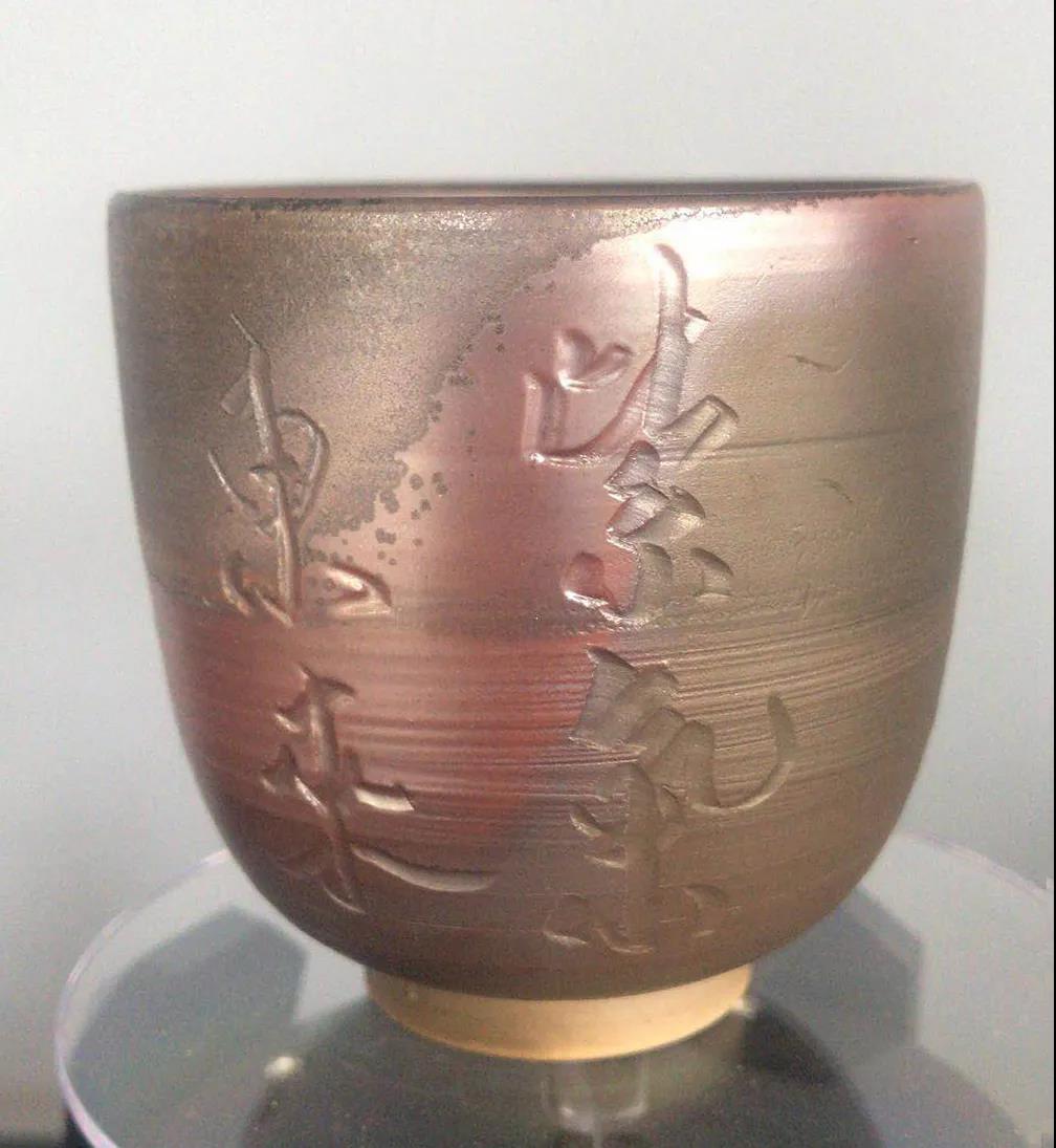 除了畫畫,張移峰還在作品上刻字。蒼勁有力的漢字讓原本安靜的作品一下子活了起來,與器物釉面效果交相輝映,更顯柴燒質(zhì)感。