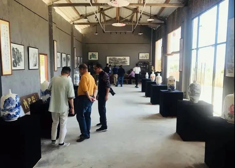 走進(jìn)張移峰的工作室,墻壁上掛滿了各式各樣的水墨畫,架子上陳列著一些柴燒器皿、青花瓷瓶,案臺(tái)上鋪著宣紙,還有未完成的瓷畫,空氣中彌漫著淡淡的墨香,一下子將人們帶進(jìn)了淡然悠遠(yuǎn)的藝術(shù)世界。