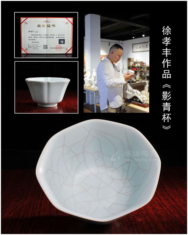 徐孝豐先后近20年從事陶瓷設(shè)計(jì)創(chuàng)作工作,特別對(duì)汝瓷制作有較深入的研究,其設(shè)計(jì)制作出一系列獨(dú)具特色的汝瓷作品,造型精美、品質(zhì)優(yōu)良,深?lèi)?ài)廣大客商好評(píng)。汝瓷在我國(guó)宋代已位居汝、均、官、哥、定五大名窯之首,原盛產(chǎn)于河南臨汝,隋煬帝大業(yè)初年(即公元605年),置臨汝為汝州,“汝州”因而得名。汝瓷燒制始于唐朝中期,盛名于北宋,北宋后期宋金戰(zhàn)亂不斷,興盛前后不過(guò)二十余年,隨著北宋的滅亡,汝瓷工藝也隨之?dāng)啻。為了更好的了解汝瓷,徐孝豐親自深入汝窯的原產(chǎn)地河南,了解汝瓷文化,而后徐孝豐又深入臺(tái)灣與當(dāng)代的制作藝術(shù)家交流學(xué)習(xí)汝瓷制作。