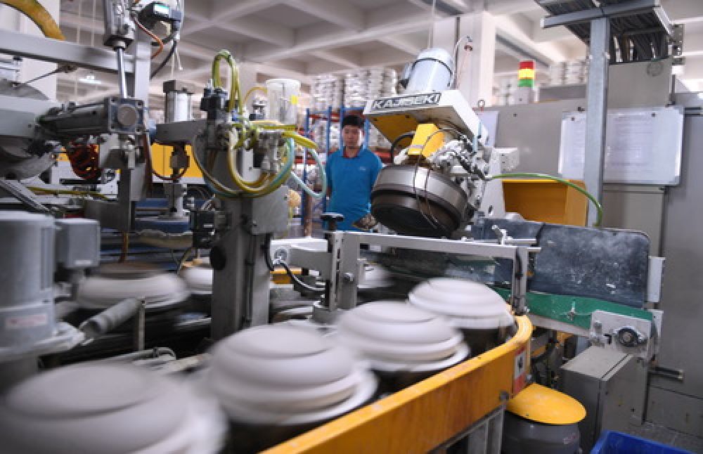2019年10月11日,在位于德化縣的一公司生產(chǎn)車間,全自動滾壓成型設(shè)備進(jìn)行產(chǎn)品成型的生產(chǎn)工序。(記者林善傳 攝)