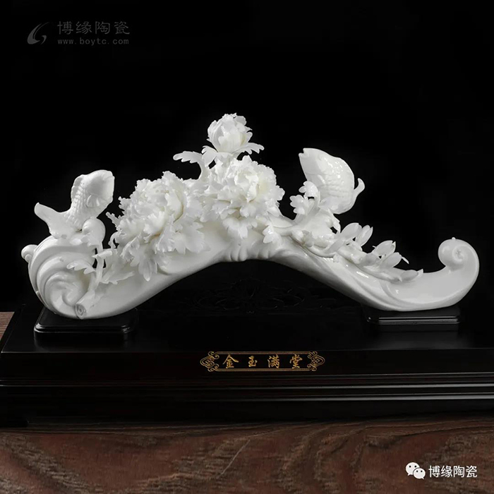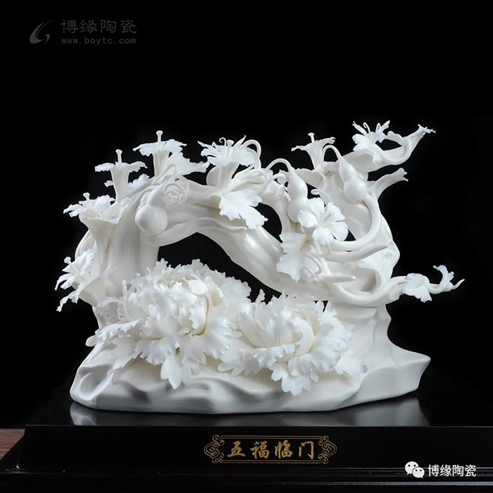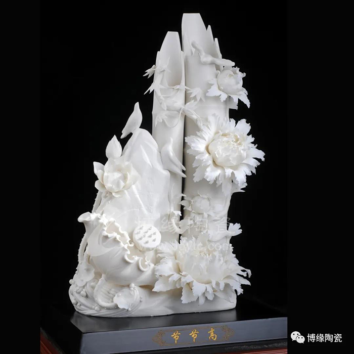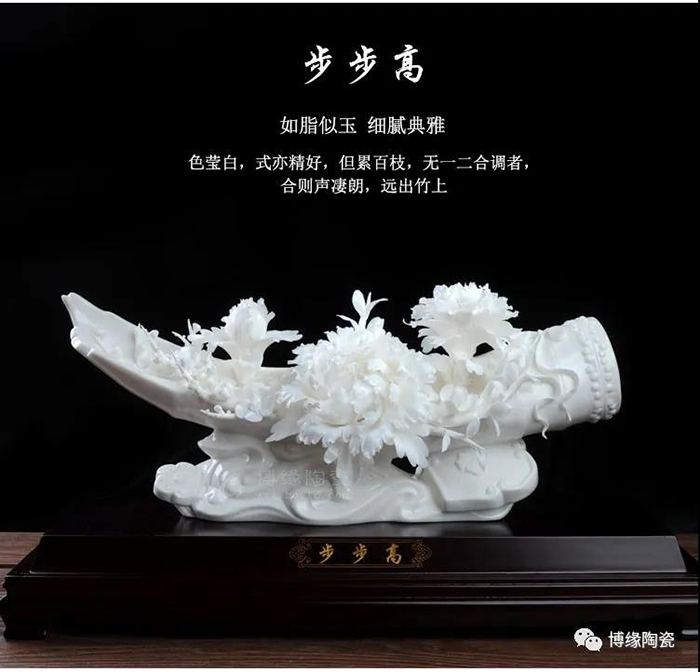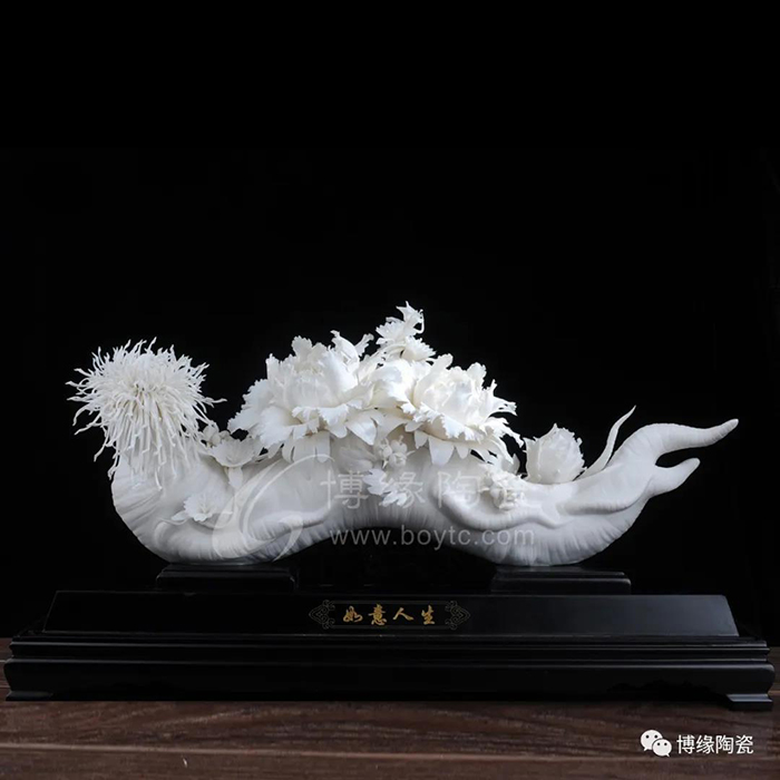 德化做為“中國白“的故鄉(xiāng),其瓷土可塑性好,表現(xiàn)力強(qiáng);德化的陶瓷藝術(shù)家以德化特有的溫潤(rùn)如玉,素凈淡雅的”中國白“為胎質(zhì),塑造了千嬌百媚的鮮花。