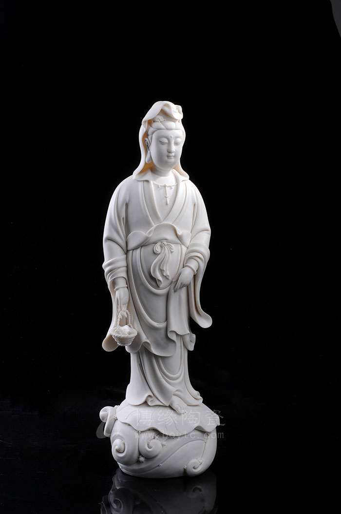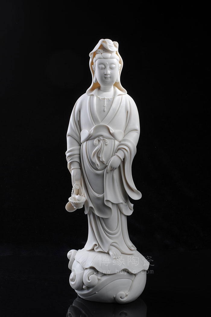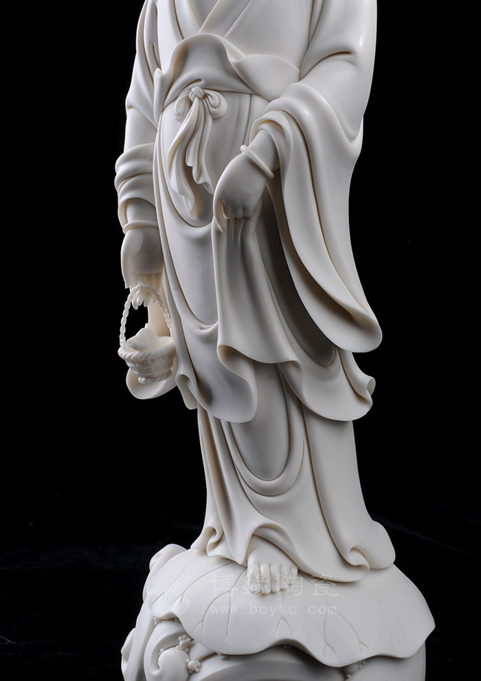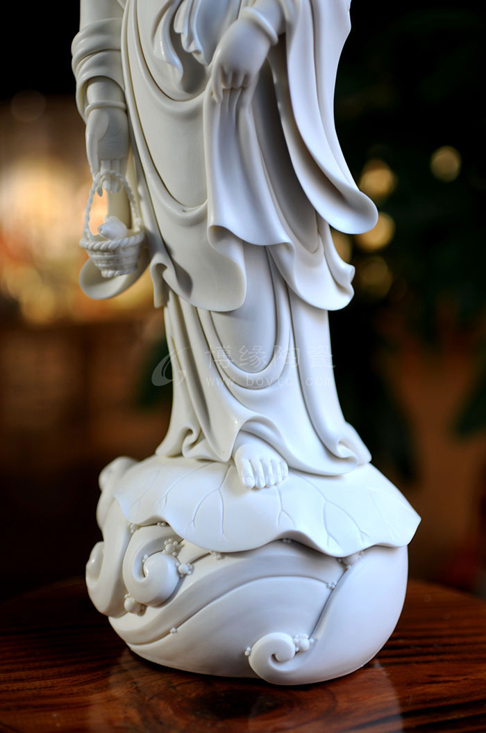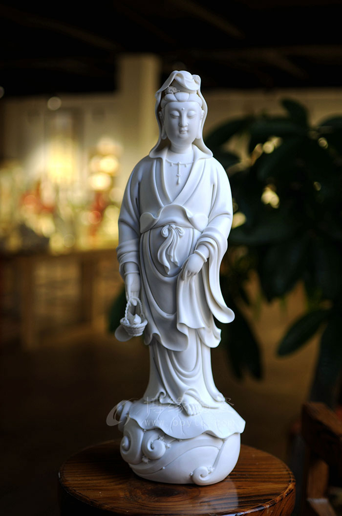 德化瓷器,以白瓷為最;白瓷之中,又以佛像為最。德化白瓷所塑佛像有性格鮮明、造型優(yōu)美、神態(tài)逼真、風(fēng)格洗練的特點(diǎn)。有一種單純的雕塑美和原材料的質(zhì)地美,最能體現(xiàn)佛教樸素、平和的思想。
