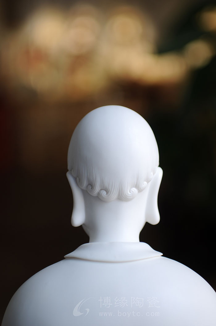 德化瓷器,以白瓷為最;白瓷之中,又以佛像為最。德化白瓷所塑佛像有性格鮮明、造型優(yōu)美、神態(tài)逼真、風(fēng)格洗練的特點。有一種單純的雕塑美和原材料的質(zhì)地美,最能體現(xiàn)佛教樸素、平和的思想。