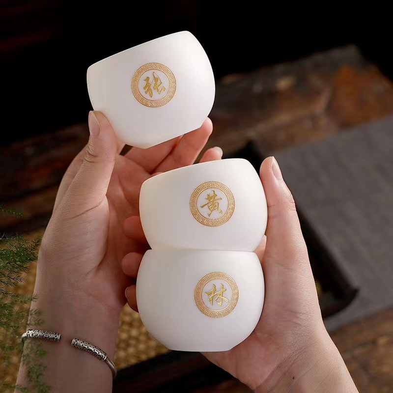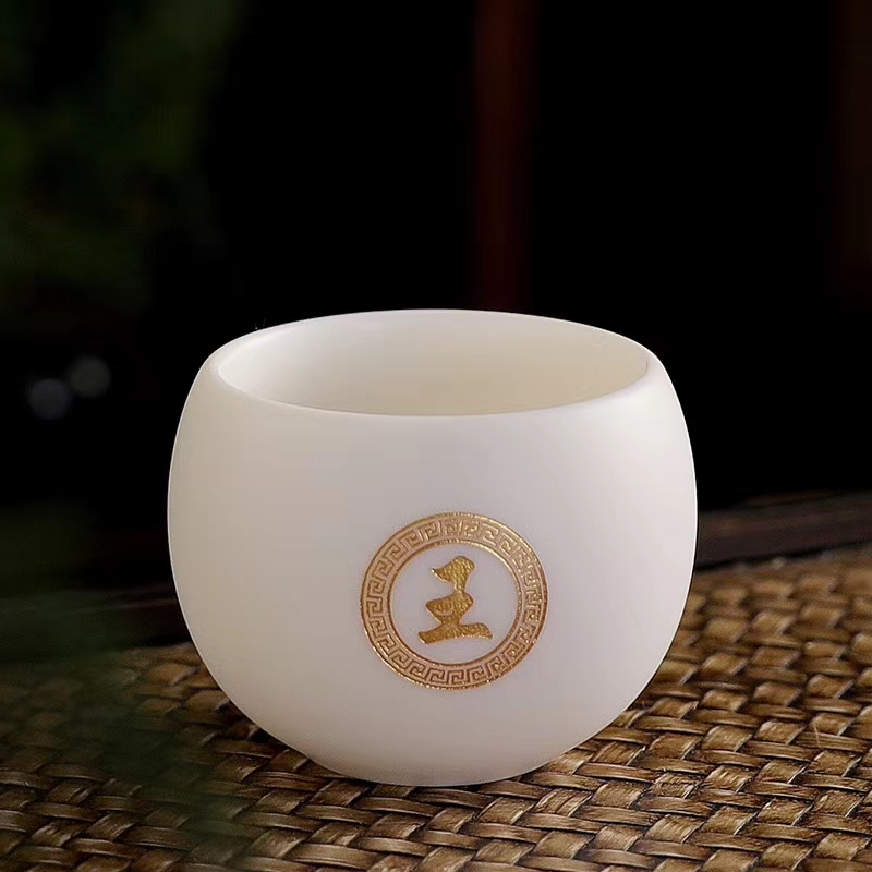 自然光下的養(yǎng)脂玉瓷茶具杯