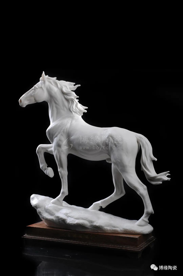 作品《高瞻遠(yuǎn)矚》由全國(guó)陶瓷行業(yè)技術(shù)能手,國(guó)家一級(jí)技師蔡國(guó)海打造,作品采用經(jīng)典素?zé)に,造型?dú)特逼真,只見(jiàn)駿馬立于高山之上,其四肢矯健、駿馬的面部線條、經(jīng)絡(luò)清晰可見(jiàn),馬鬃飄揚(yáng),目光炯炯有神,表現(xiàn)力強(qiáng),每個(gè)部位都搭配得那么得當(dāng),一雕一刻,都凝聚了大師的汗水與靈感。
