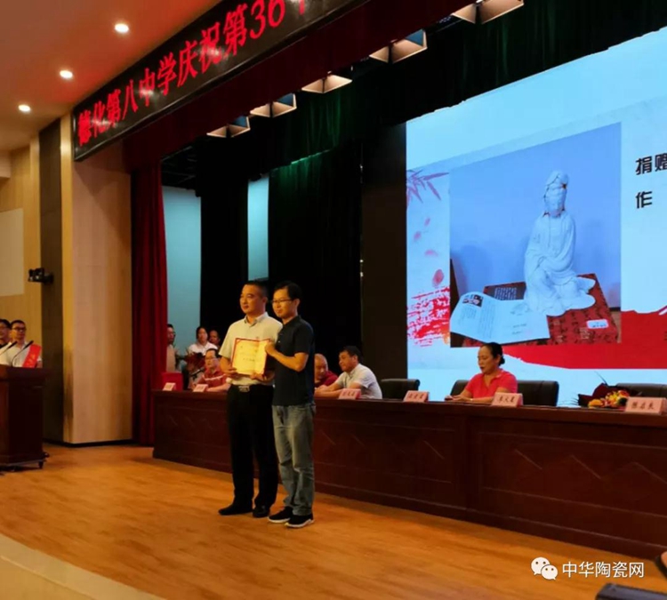 春華秋實,桃李沁香,9月9日、9月10日正值第36個教師節(jié)之際,由泉州市青年發(fā)展促進會德化泉緣之家組織的德化陶瓷藝術(shù)家捐資助教情系桑梓愛心活動,在德化第八中學和第三實驗小學舉行。據(jù)了解參加本次活動的陶瓷藝術(shù)家有陳廷實、陳詩強、陳素珠、方麗華、江祖清、柯維太、李長春、李金鐘、李麗嬌、李美周、林建平、凃金旺、王建元、王瑞婷、徐文守、曾慶成、鄭金土、鄭文斌、莊曉明等40多位;顒又,陶瓷藝家們所捐贈的優(yōu)秀作品,由作者本人或教育界領導頒發(fā)給優(yōu)秀教師。