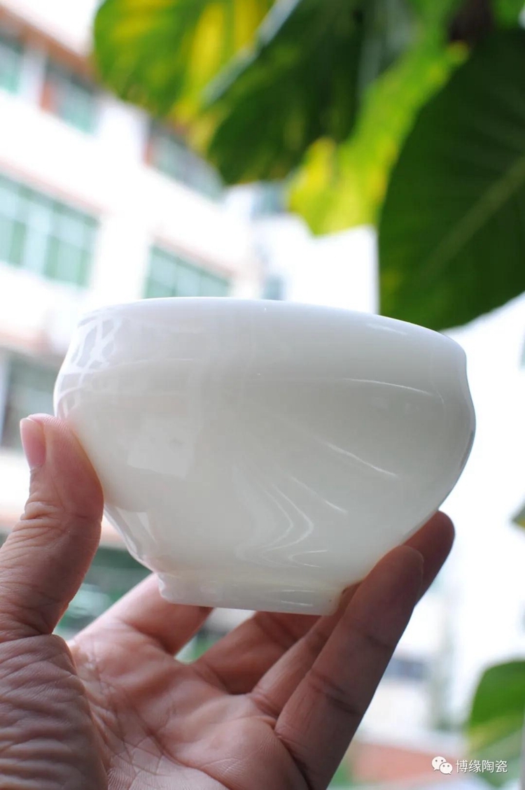 其瓷器特點溫潤如玉潔白、表面光滑但又不刺眼、瓷件呈現出半透明狀、在日光下顯示象牙白、用強光照射泛出微微的黃色光、上釉的施釉均勻,是瓷中上品。