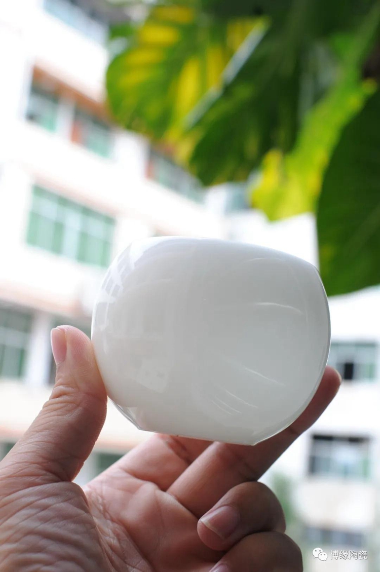 “和田玉瓷”表面光滑但又不刺眼、瓷呈現出半透明狀,用強光照射潤溫通透,表面施釉均勻,是瓷中上品。