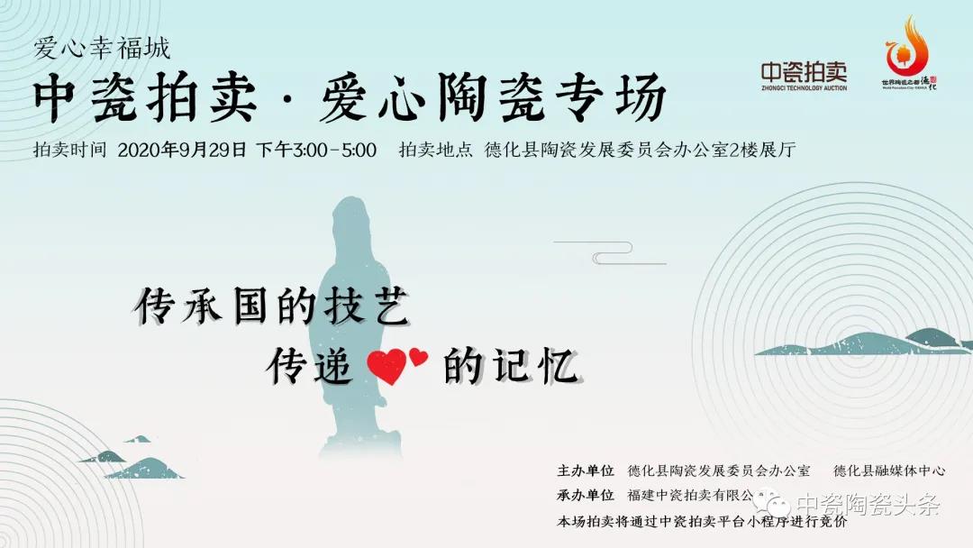 大國(guó)有匠,大愛(ài)無(wú)形。中瓷拍賣·愛(ài)心陶瓷拍賣專場(chǎng)即將在9月29日開(kāi)拍,并將拍賣所得捐給“愛(ài)心幸福城”基金,積極為德化“愛(ài)心幸福城”的創(chuàng)建貢獻(xiàn)一份力量。
