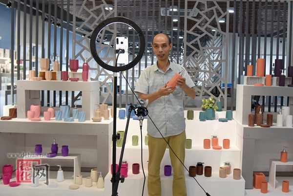 陶瓷企業(yè)通過直播的方式,向客戶展示樣品