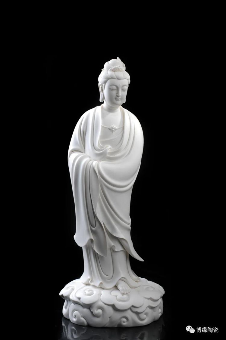 德化瓷器,以白瓷為最;白瓷之中,又以佛像為最。德化白瓷所塑佛像有性格鮮明、造型優(yōu)美、神態(tài)逼真、風(fēng)格洗練的特點(diǎn)。有一種單純的雕塑美和原材料的質(zhì)地美,最能體現(xiàn)佛教樸素、平和的思想。