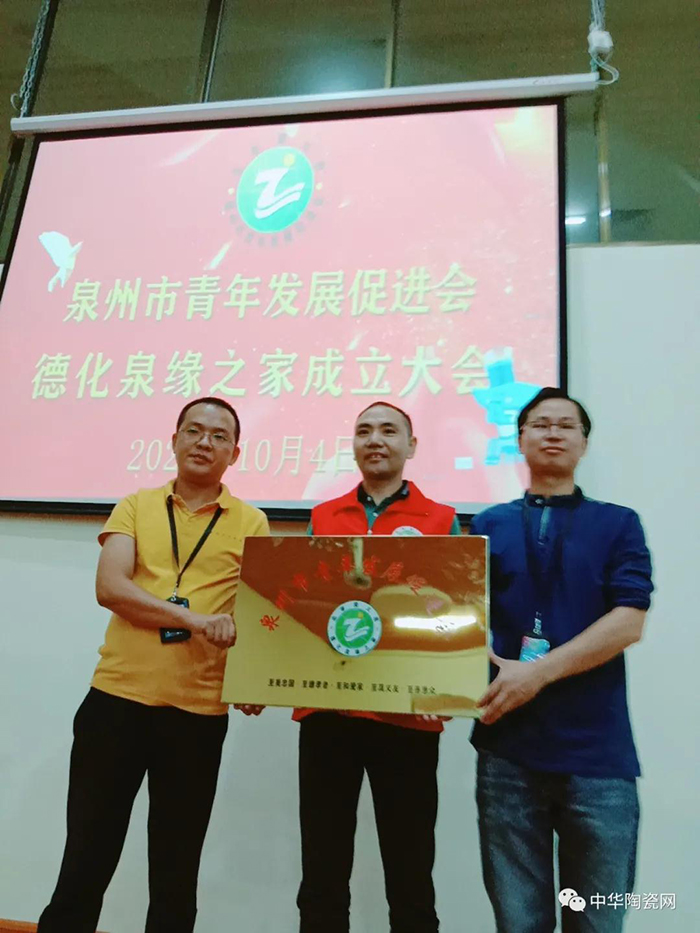 泉州市青年發(fā)展促進(jìn)會(huì)會(huì)長(zhǎng)潘海陽(yáng)為德化泉緣之家頒發(fā)證書