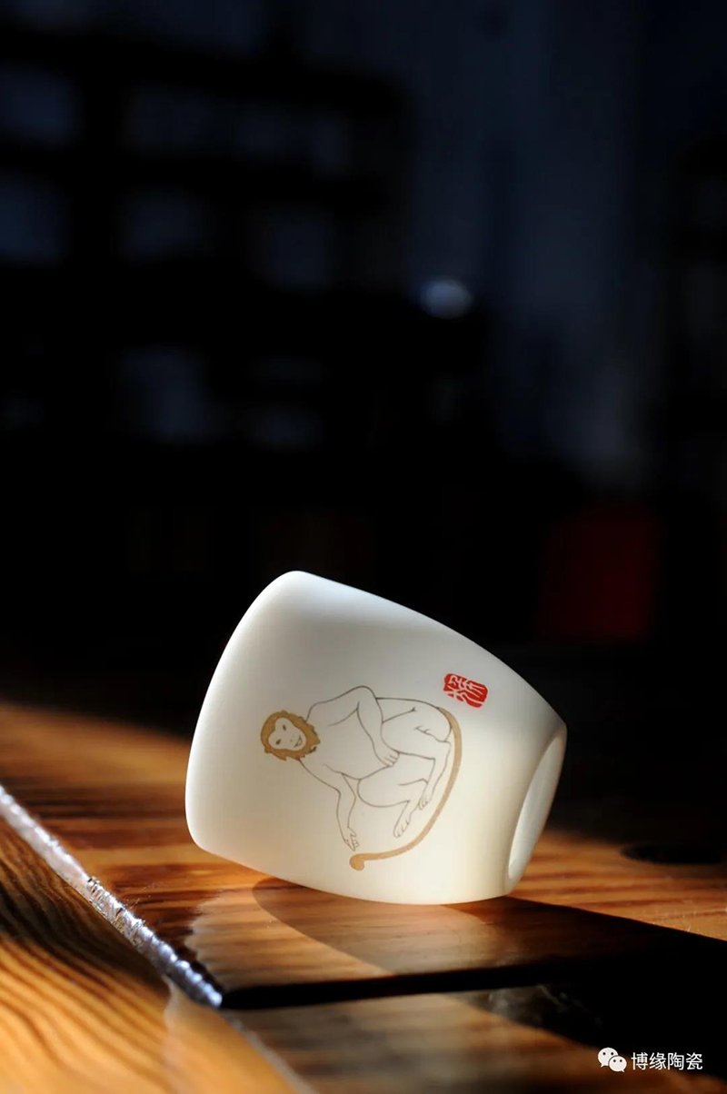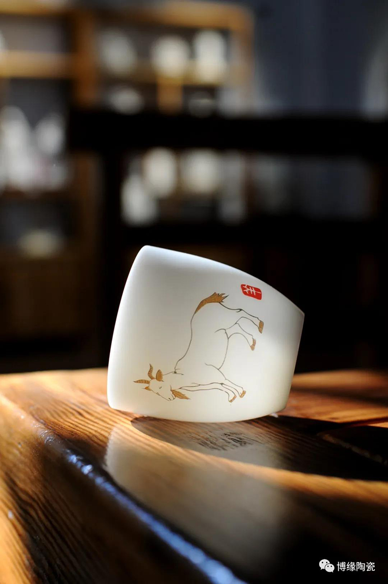自然光下的養(yǎng)脂玉瓷茶具杯