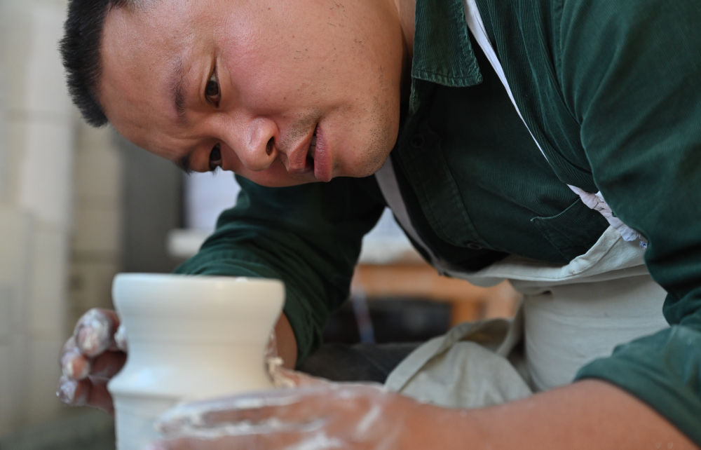 10月20日,徐金寶在拉坯制作白瓷茶具。
