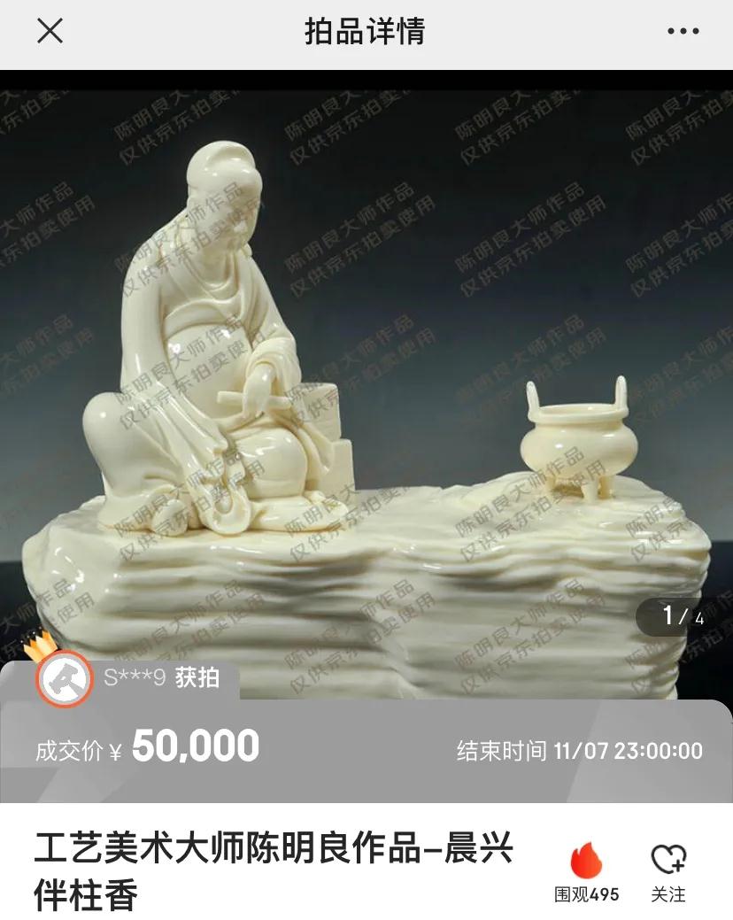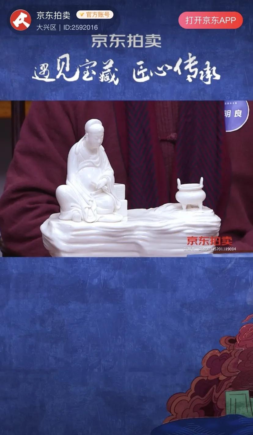 中國工藝美術(shù)大師陳明良作為國家非物質(zhì)文化遺產(chǎn)“德化瓷燒制技藝”代表性傳承人,此次帶來一款獨具德化窯特色風(fēng)格的瓷雕作品《晨興半柱香》亮相京東拍賣,通過在線展示德化白瓷材質(zhì),講解德化瓷雕技藝和燒制工藝,增長線上網(wǎng)友對德化瓷雕作品的見解,促進德化藝術(shù)瓷的進一步傳播和推廣。