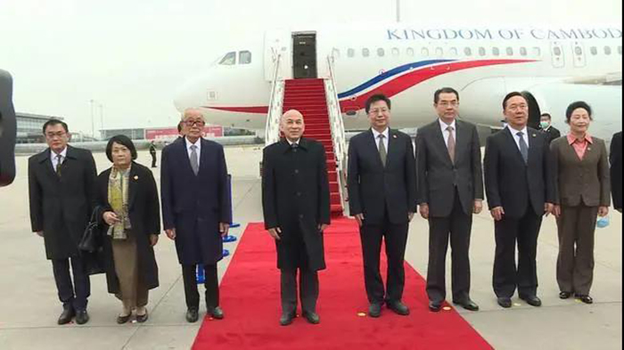 停機(jī)坪上,延安人民敲鑼打鼓,載歌載舞,像歡迎自己的親人一樣歡迎西哈莫尼國王,體現(xiàn)了中柬兩國人民的深厚友誼。
