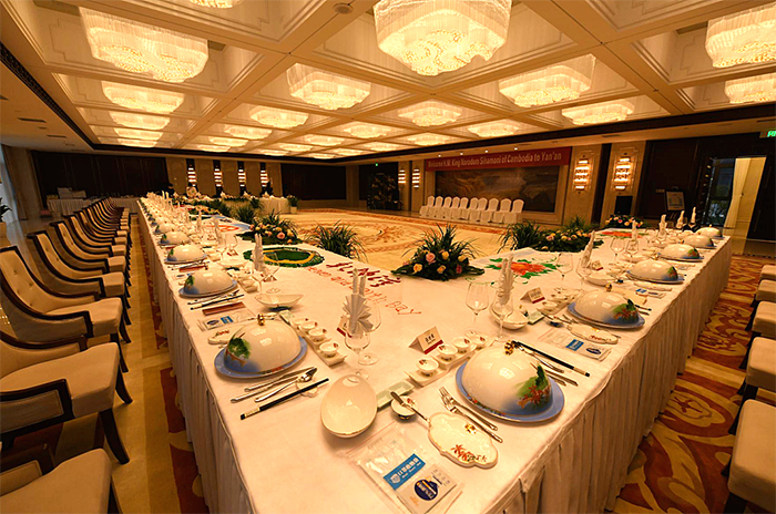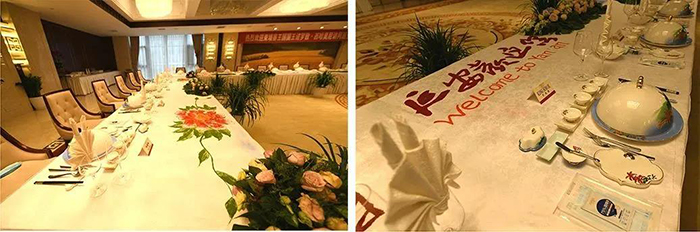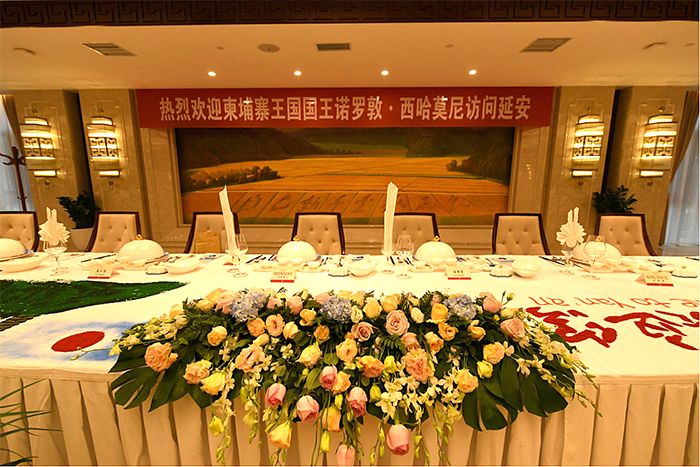 當(dāng)天晚上,延安市委市政府為西哈莫尼國王舉辦了溫馨而又隆重的歡迎晚宴。德化五洲御瓷為此次晚宴特意精心定制的中國白《圣地初心》系列餐具,因其光澤如玉、圓潤周和、花面靈動(dòng)受到國內(nèi)外來賓的一致贊許。