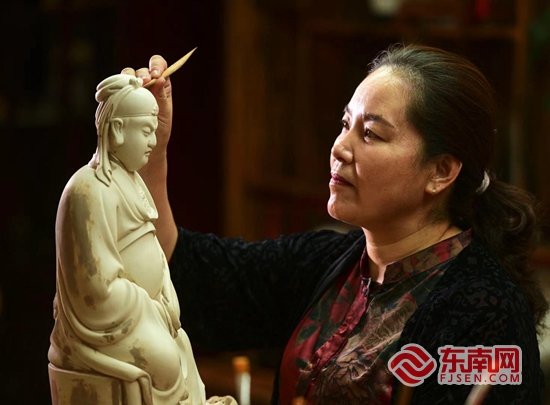山東女子朱芳芳扎根德化三十年來,她始終不改初心,熱愛德化陶瓷,經(jīng)過不懈的探索、鉆研、創(chuàng)作,她取得了國(guó)家一級(jí)技師、高級(jí)工藝美術(shù)師職業(yè)資格,獲評(píng)福建省工藝美術(shù)大師、福建省陶瓷藝術(shù)大師、閩派雕刻藝術(shù)大師、泉州市工藝美術(shù)大師。