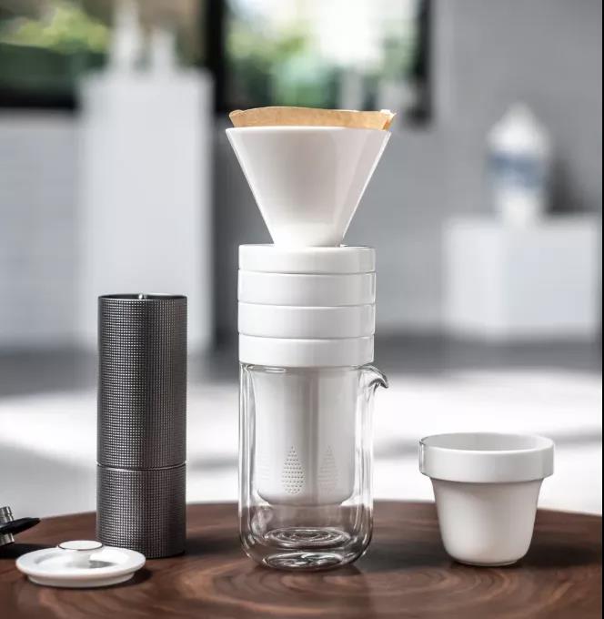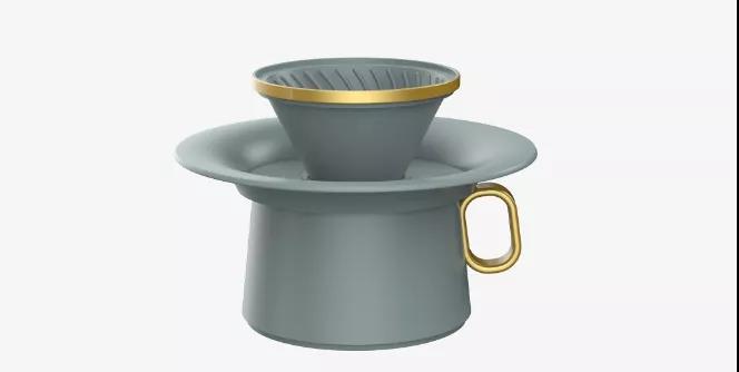 和普通茶咖不同,鄭智輝在他的作品上面運用了一款最新的特種陶瓷材料。他介紹說,當時設(shè)計這款產(chǎn)品的初衷是為了通過改進咖啡壺來實現(xiàn)環(huán)保節(jié)約的理念。普通的手沖咖啡,需要配置一次性濾紙,造成了一定的資源浪費,而這款茶咖作品借助了目前最先進的特種陶瓷材料,這種材料具有40~50微米孔徑,與陶瓷濾斗結(jié)合可以非常高效徹底過濾掉咖啡殘渣,并且也可以滿足茶葉沖泡功能,茶咖兩用,便捷生活。