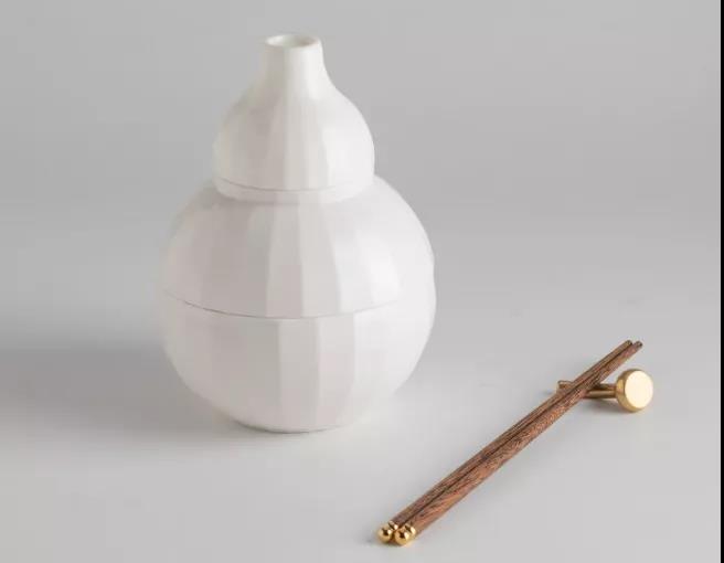 在中國傳統(tǒng)里面,葫蘆諧音“福祿”,代表著國人對美好生活的向往。而這款作品由一杯兩碗一筷架組合而成,整個組裝堆疊起來恰巧就是一個葫蘆的形狀,有著非常吉祥的福氣寓意。另外在疫情時代,這種一人食餐具也非常符合當下一人飲食的趨勢。