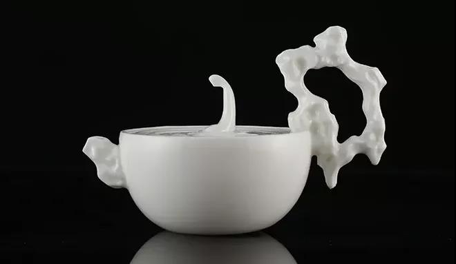 形式要為功能服務(wù),不追求過多的外在裝飾,唐曉苗在沙龍中反復(fù)地強調(diào)他的設(shè)計理念。特別是由于德化的白瓷本身的顏色、質(zhì)地已經(jīng)趨于完美,如果過多的在中國白上面增加繁復(fù)的紋飾,反而會畫蛇添足,所以他的這件“mg2茶咖分享壺”非常地干凈純粹,整體風(fēng)格十分簡約。同時這款作品還借鑒了閩南傳統(tǒng)美食碗糕的特點,從碗糕碗的可重疊方式中汲取了古人對空間利用的智慧。