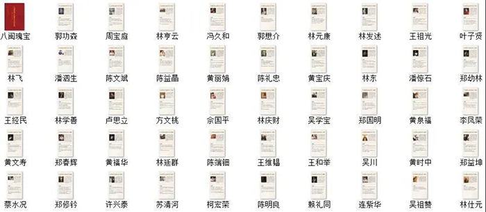 2014年,海峽文化藝術品保護基金會出版《八閩瑰寶——八閩中國工藝美術大師合集》,是最早對全省國大師進行系統(tǒng)介紹的專著,是迄今為止最為學風嚴謹、內容權威者。但由于出版時間較早,未收錄2018年新評選出來的第七屆之十一位國大師。